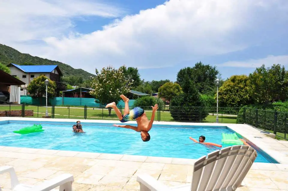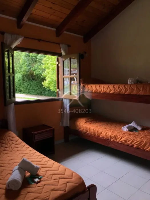 CabañasPara cinco personasAire AcondicionadoDos piscinasVajilla completaJuegos infantilesVentiladores de techoCochera y parrilla individualPlancha y tabla de planchar disponibleDesayuno secoMucama día por medioRopa blanca con recambioSmart TV LED 32″Wi-Fi disponibleQuincho de usos múltiplesAmplio parque al pie de la sierra